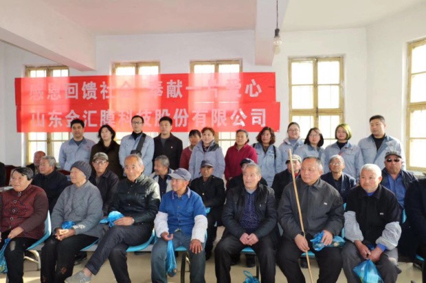 2018年12月23日山東金匯膜科技股份有限公司攜手招遠楊帆助學公益組織,慰問蠶莊敬老院,為那里的老人們包餃子,送上水果、點心、棉襪等禮物。關愛老人,奉獻愛心,有我金匯膜!感謝楊帆助學的義工們!