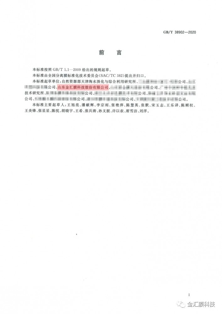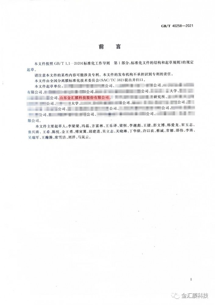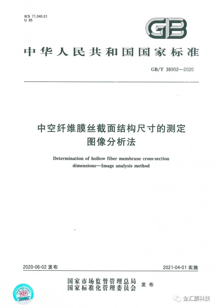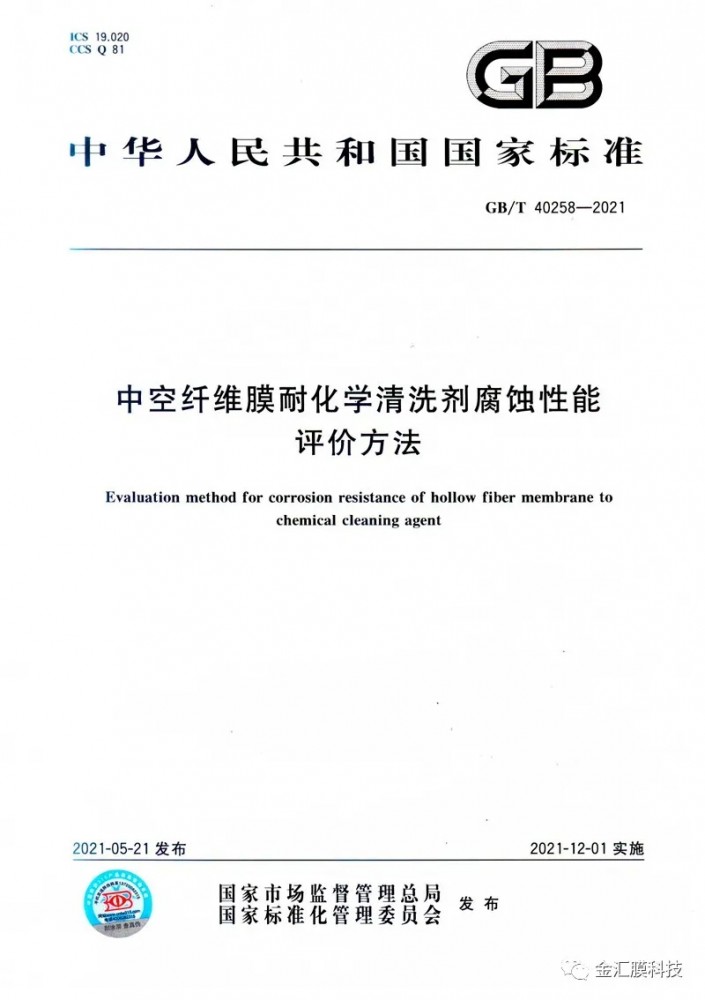山東金匯膜科技股份有限公司參與起草編寫了國(guó)家標(biāo)準(zhǔn):《中空纖維膜絲截面結(jié)構(gòu)尺寸的測(cè)定圖像分析法》、 《中空纖維膜耐化學(xué)清洗劑腐蝕性能評(píng)價(jià)方法》2項(xiàng),現(xiàn)已發(fā)布。