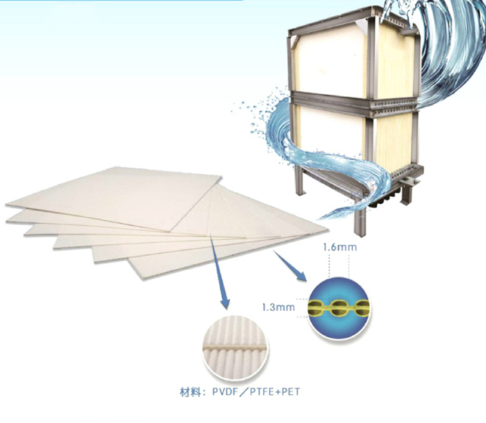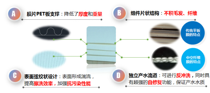 (2)組件結(jié)構(gòu)緊湊,裝填面積高,裝填比傳統(tǒng)平板膜提高 200%以上,能耗小于 傳統(tǒng)平板膜的 50%,甚至更低;